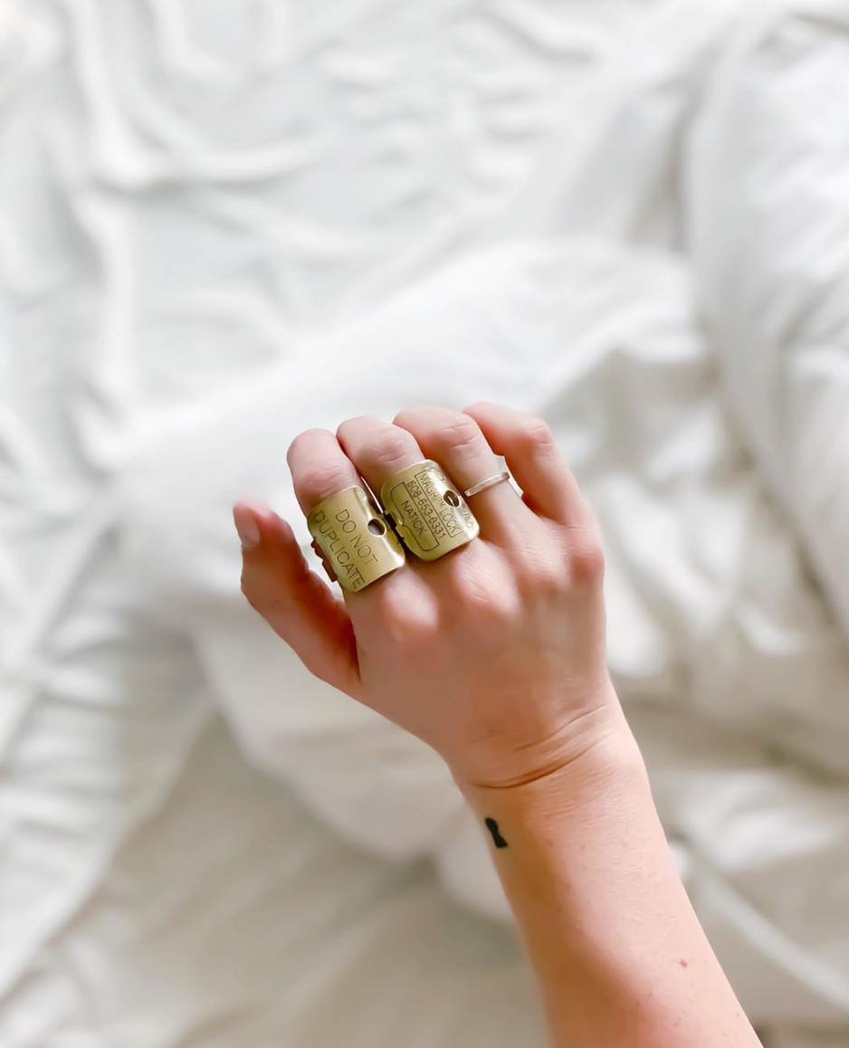 JoJo Rings are made from recycled keys, and each piece is a one-of-a-kind celebration of individual style. Although your item will be similar to the pieces shown, it will not be identical to any in the picture or to any other JoJo Ring. Your piece will be unique and special to you. Please note that all silver rings are nickel-plated for those who have allergies.