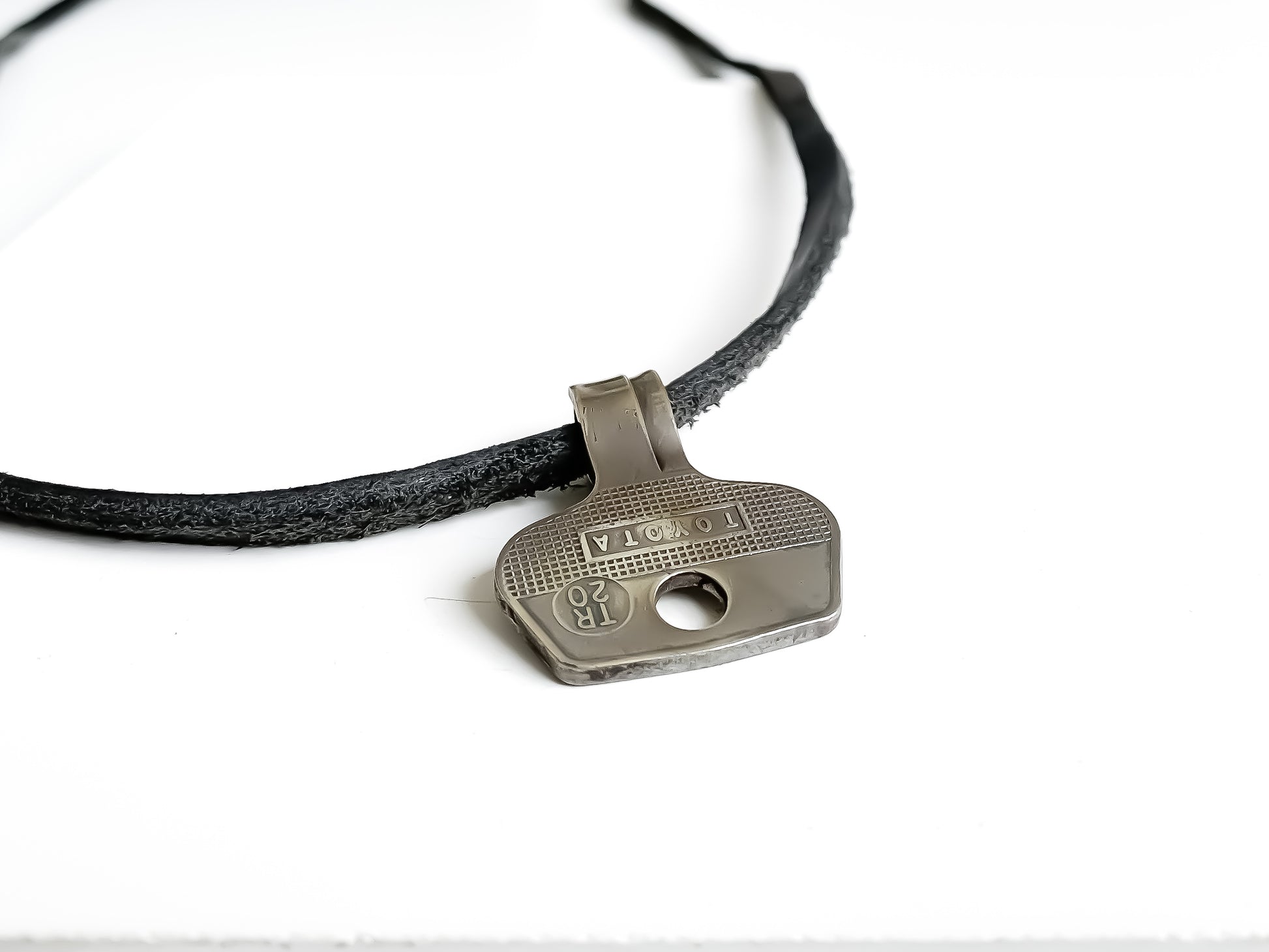 This one-of-a-kind large 'Toyota Checkered' JoJo Wrap pendant is perfect for any car lover. You can choose between brown or black leather for this wrap.