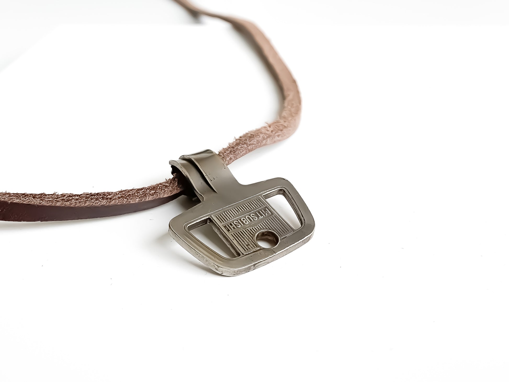 This one-of-a-kind 'Mitsubishi' JoJo Wrap pendant is perfect for any car lover. You can choose between brown or black leather for this wrap.