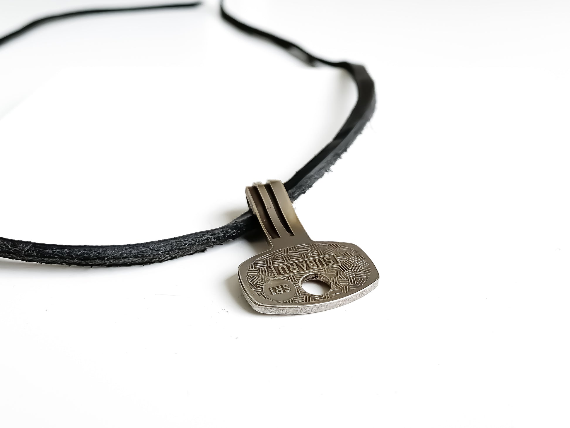 This one-of-a-kind 'Subaru' JoJo Wrap pendant is perfect for any car lover. You can choose between brown or black leather for this wrap.